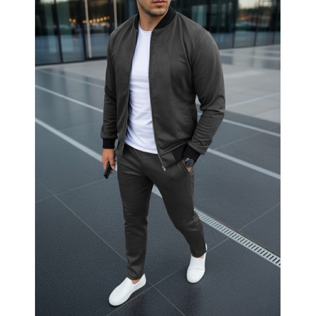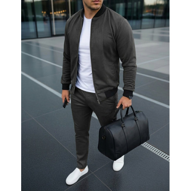 Опис Замшевий костюм чоловічий бомбер та штани сірий