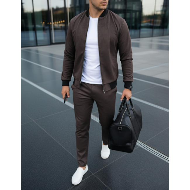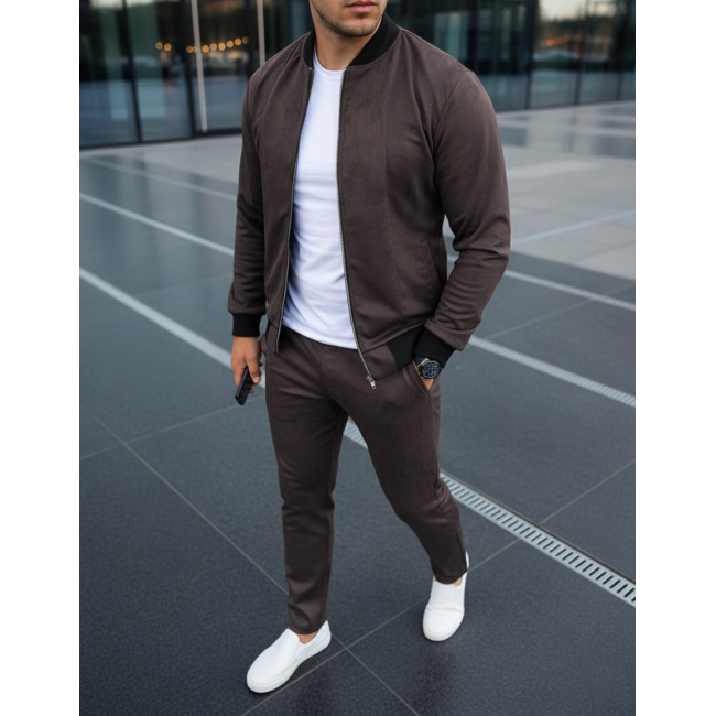 Характеристики Замшевий костюм чоловічий бомбер та штани шоколад