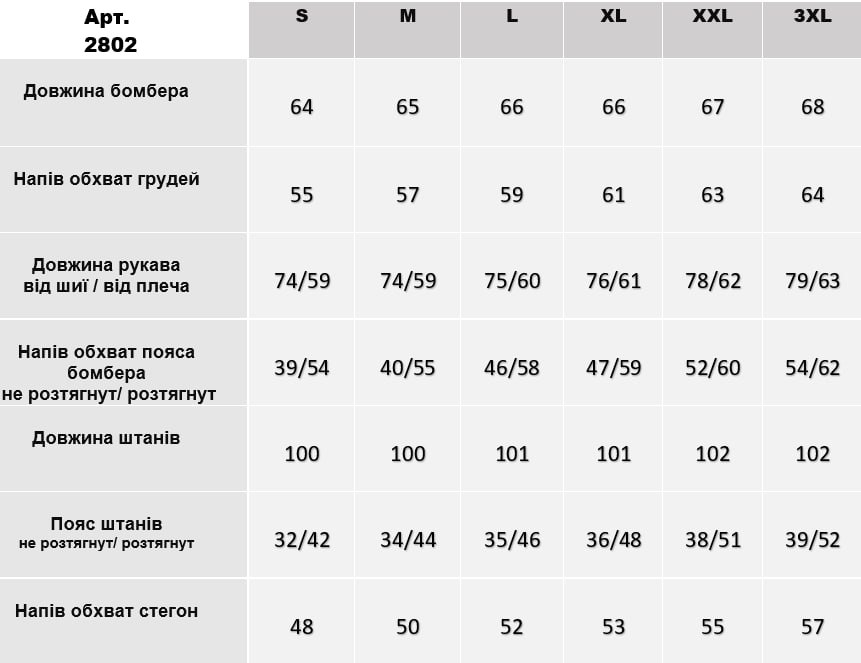 Розміри: S, M, L, XL, 2XL, 3XL
