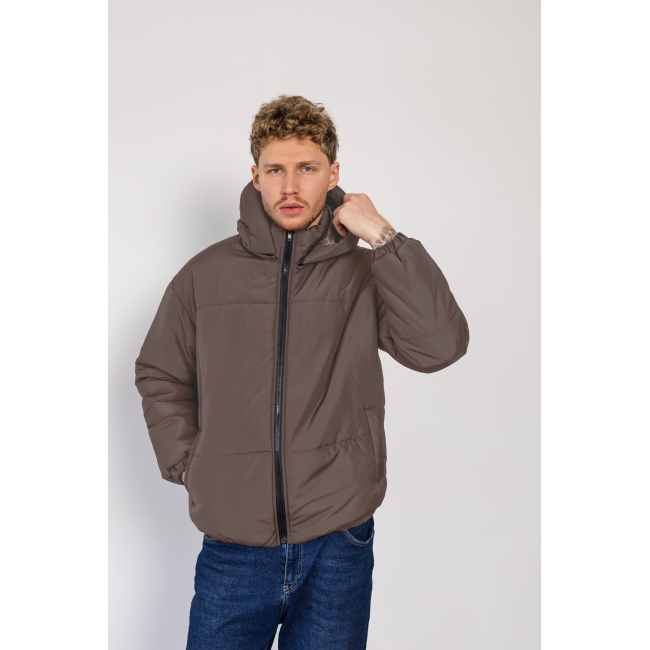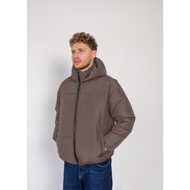 Опис Зимова oversize куртка зі з‘ємним капюшоном шоколад