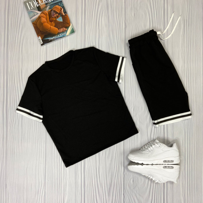 Чоловічий чорний спортивний костюм футболки та шорти Line
