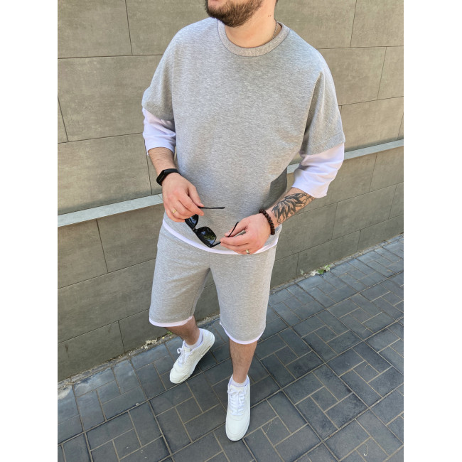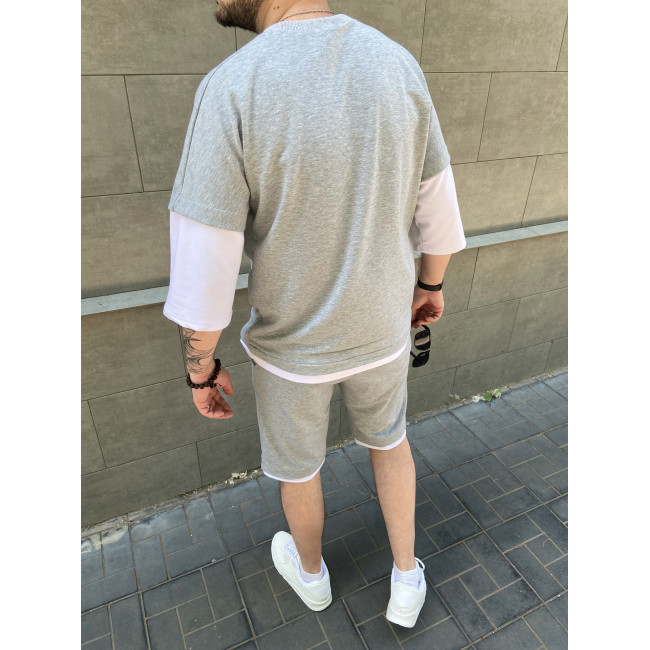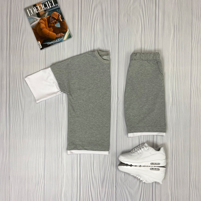 Спортивний сірий костюм шорти та футболка з рукавами вільного крою