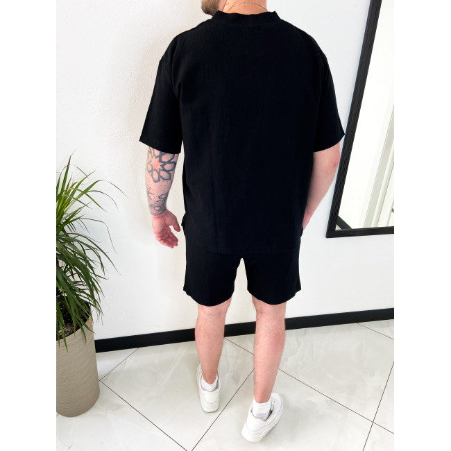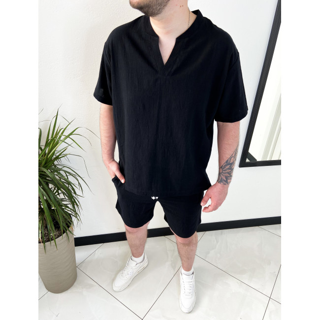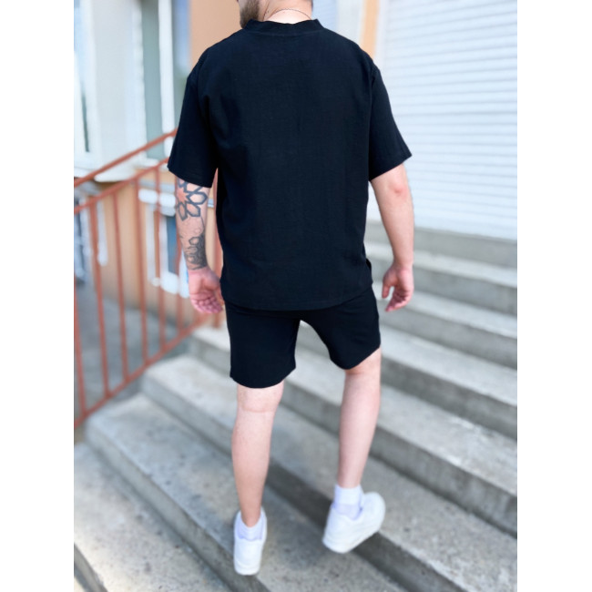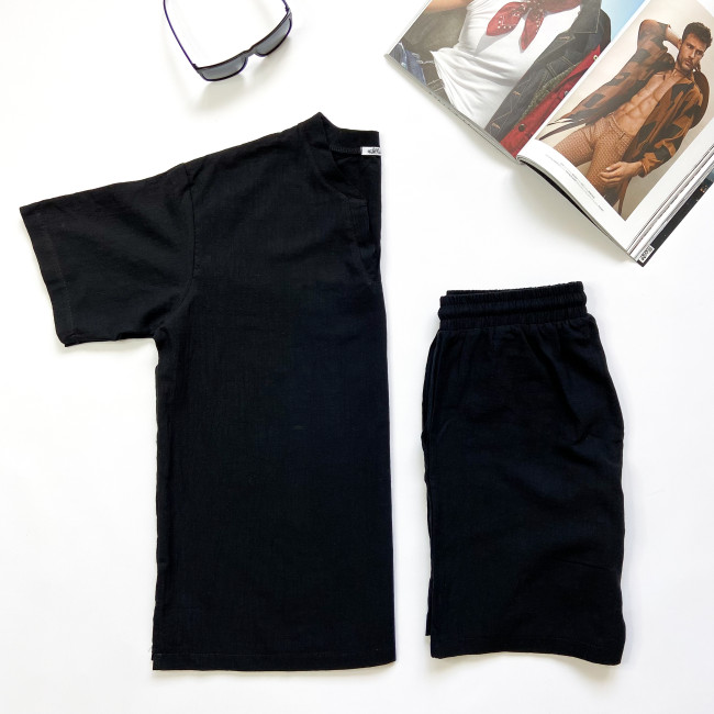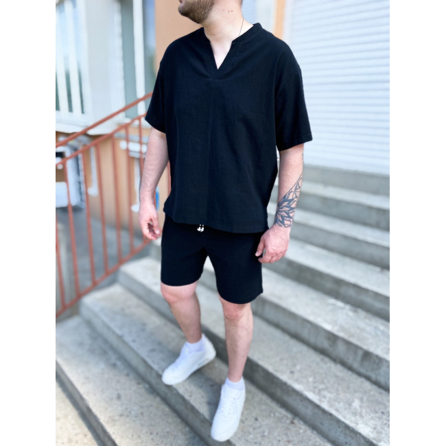 Опис Чоловічий чорний лляний костюм вільного крою футболока та шорти