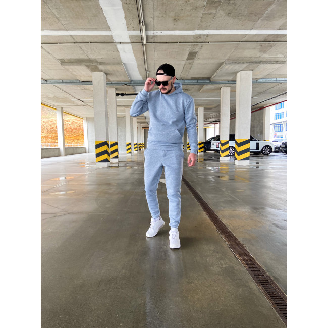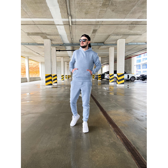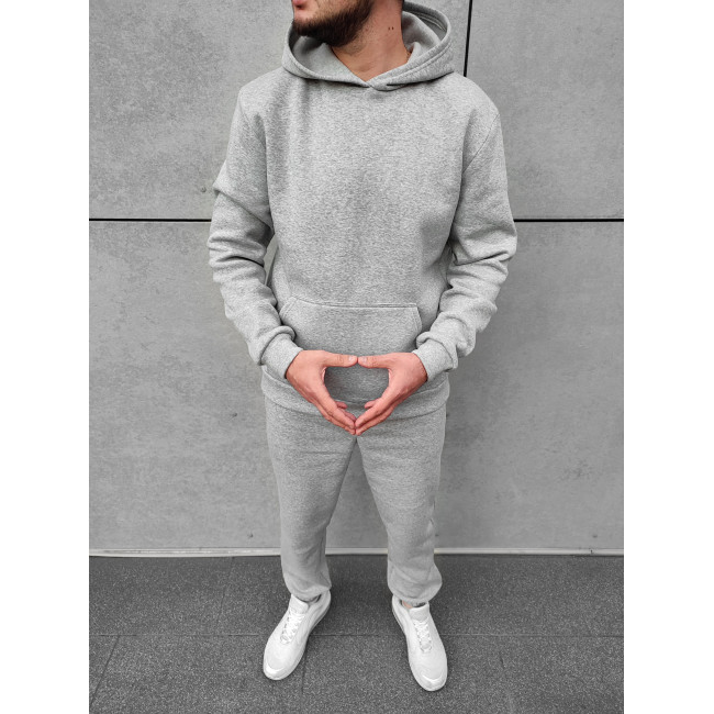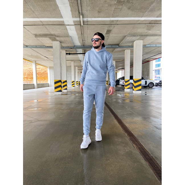 Опис Чоловічий теплий базовий спортивний костюм з кишенею "кенгуру" | Сірий