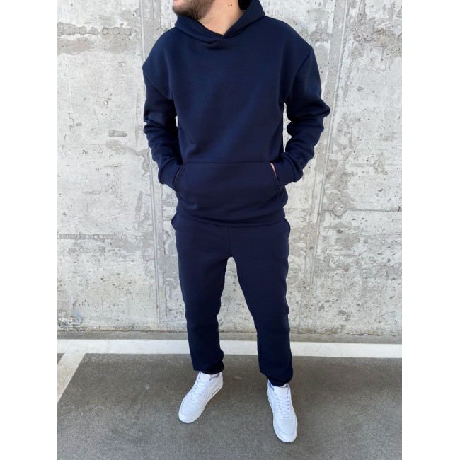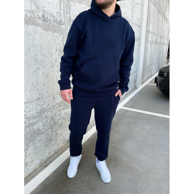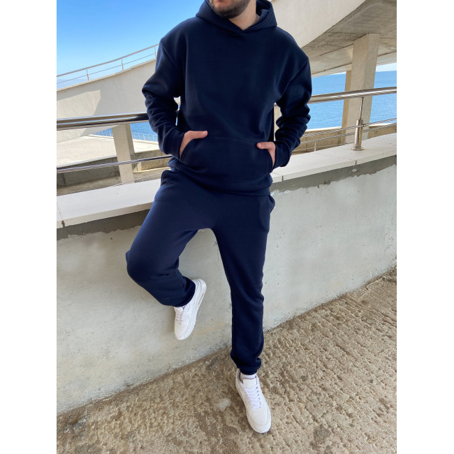 Теплий синій оверсайз спортивний костюм на флісі