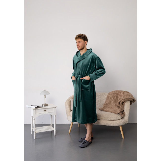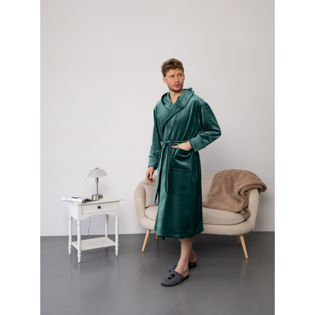 Описание Мужской халат премиум качества цвет изумруд