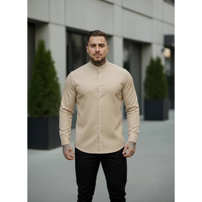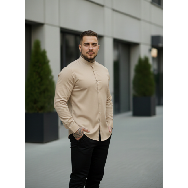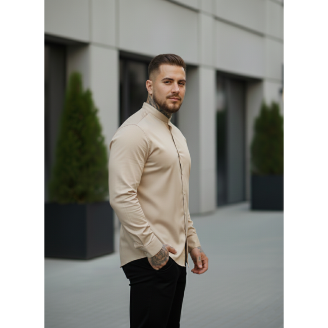 Рубашка коттон воротник стойка бежевая