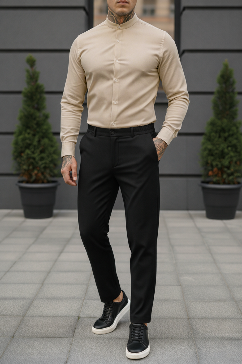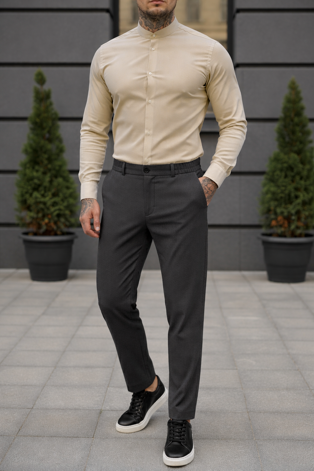 Пояс штанов на резинке, низ штанов без манжетов