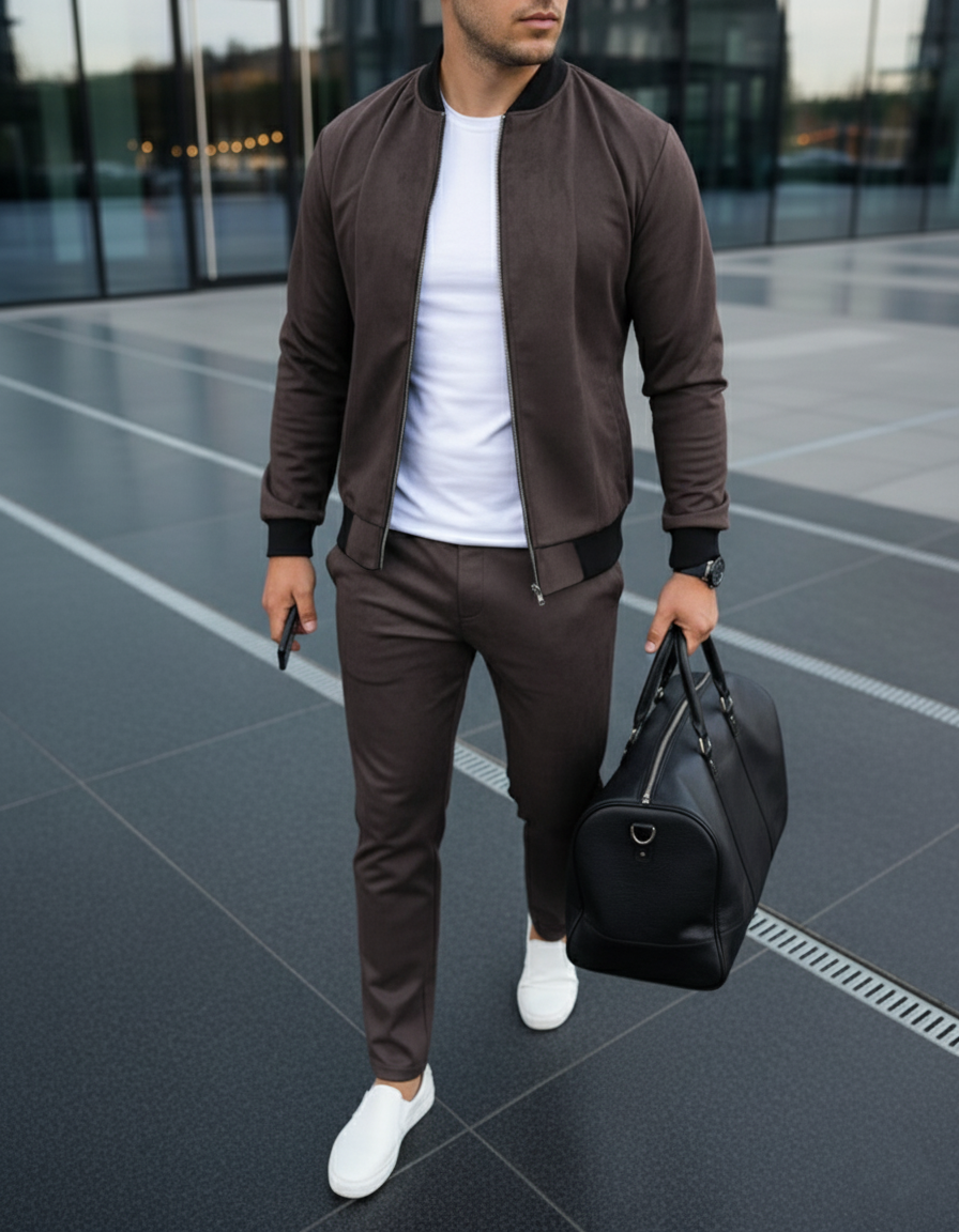 Замшевый костюм бомбер и штаны