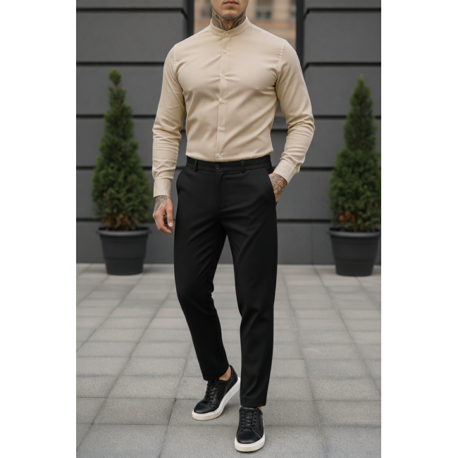 Характеристики Классический комплект бежевая рубашка и черные брюки.