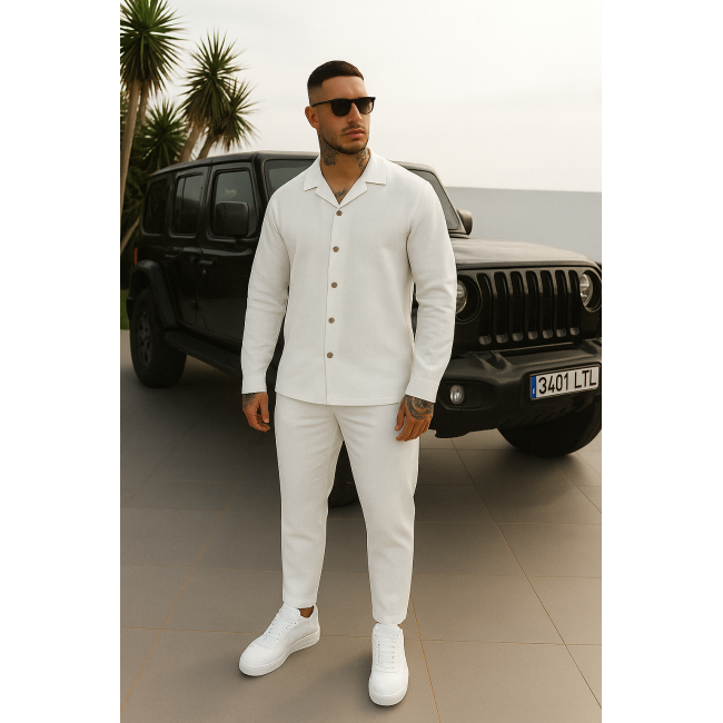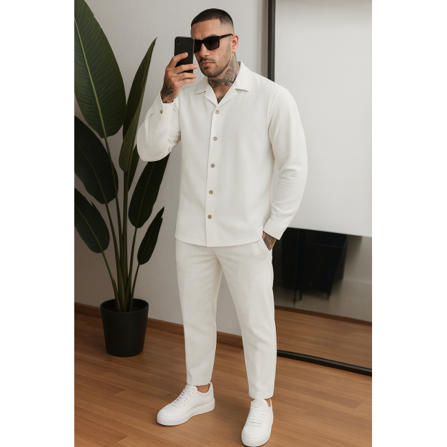 Мужской льняной костюм рубашка длинный рукав и штаны белый