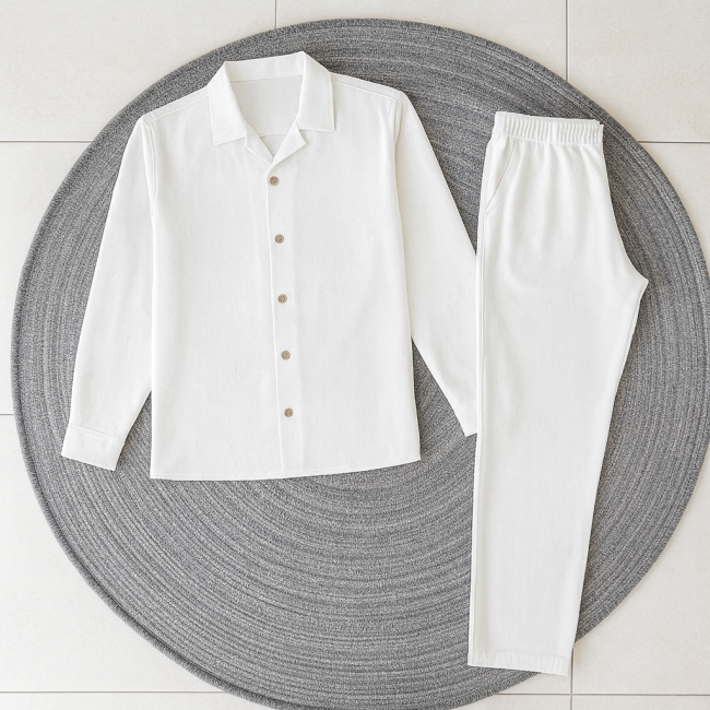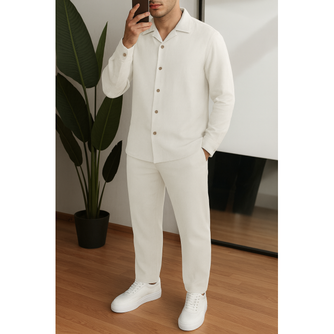 Характеристики Мужской льняной костюм рубашка длинный рукав и штаны белый