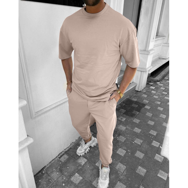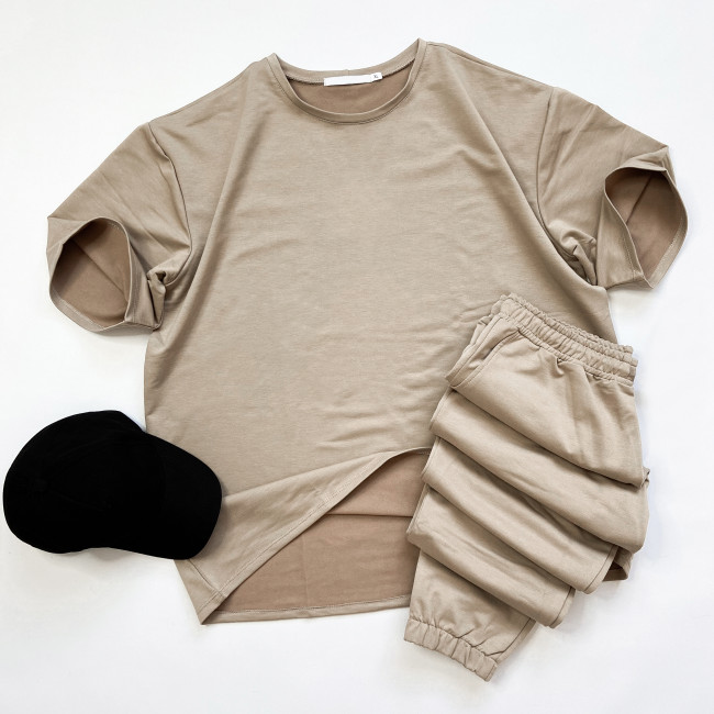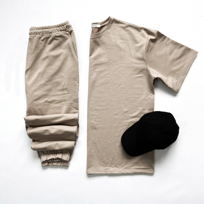 Описание Мужской бежевый костюм футболка оверсайз и штаны