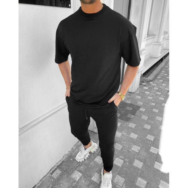 Мужской черный костюм футболка оверсайз и штаны