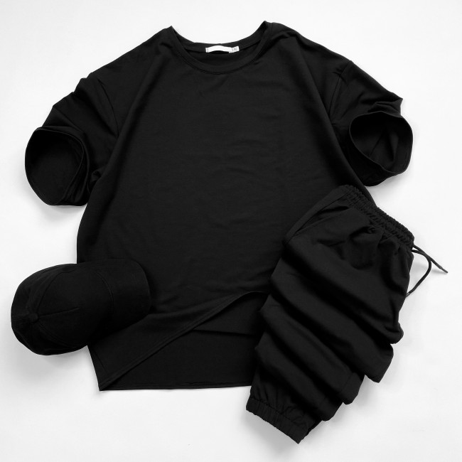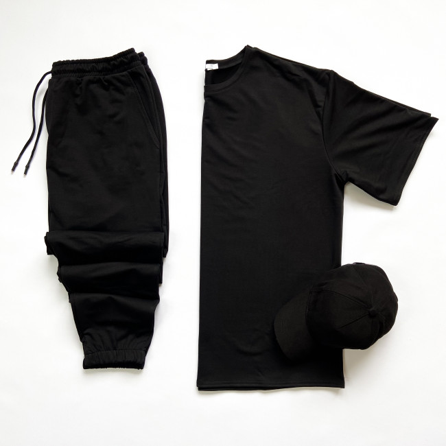 Характеристики Мужской черный костюм футболка оверсайз и штаны