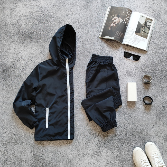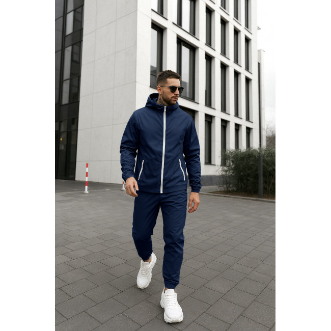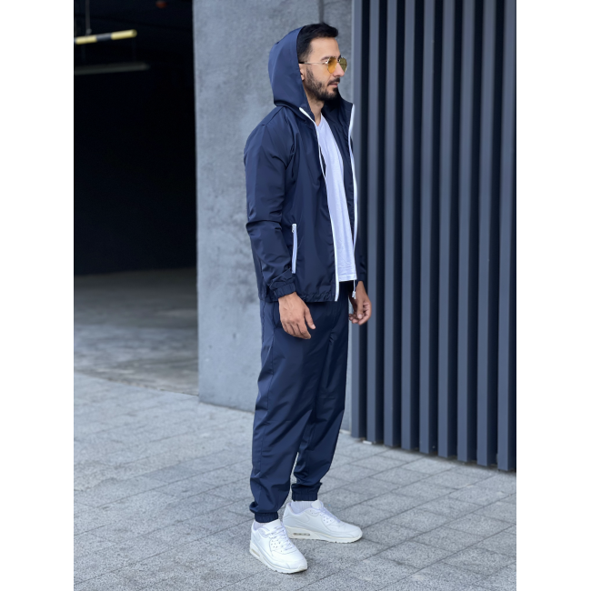 Комплект синяя ветровка белая змейка+ спорт. штаны из плащевки