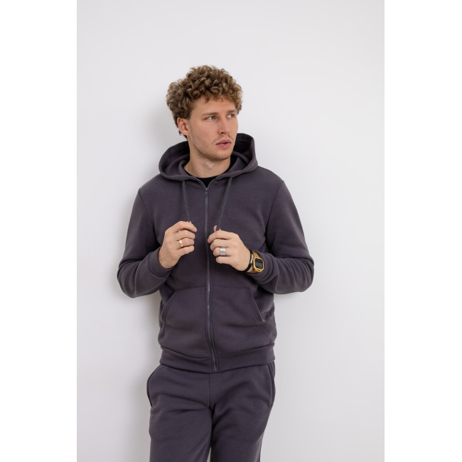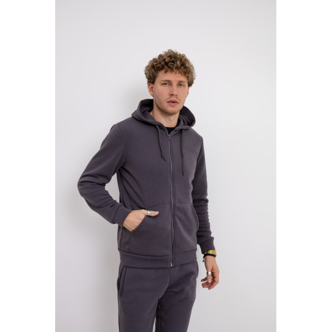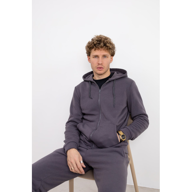 Теплый серый спортивный костюм с худи на молнии