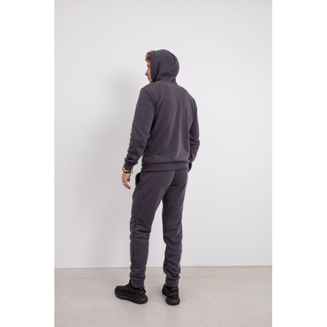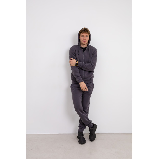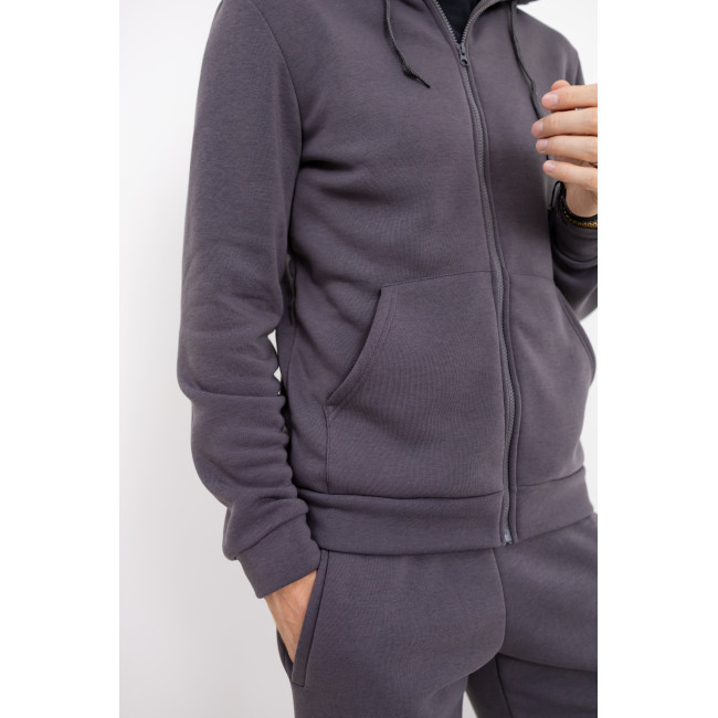 Описание Теплый серый спортивный костюм с худи на молнии