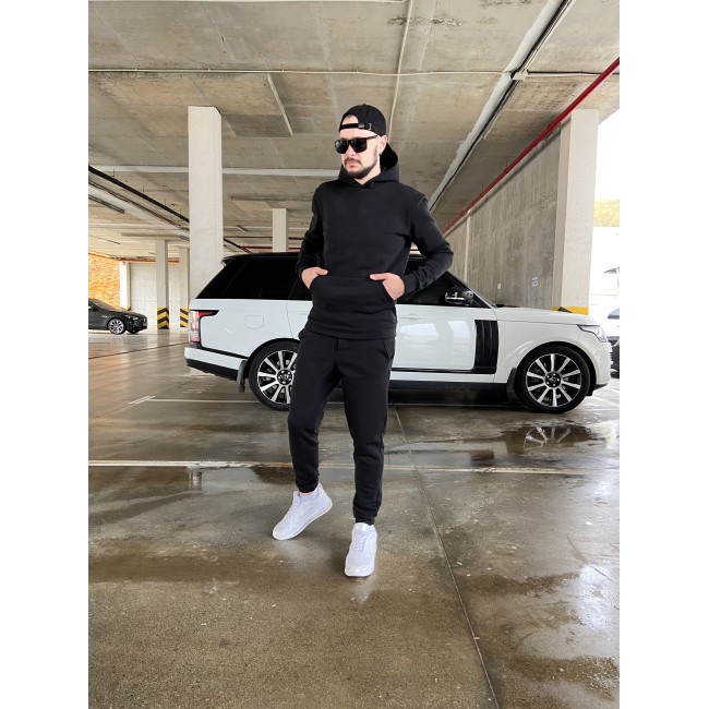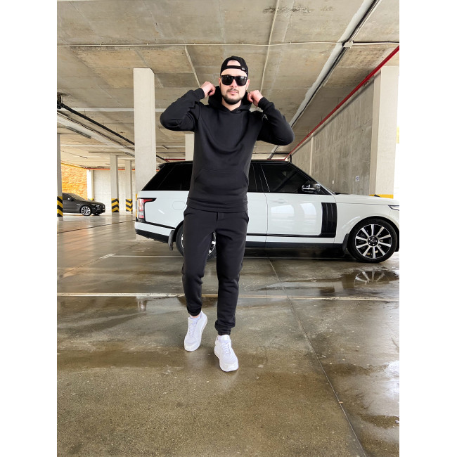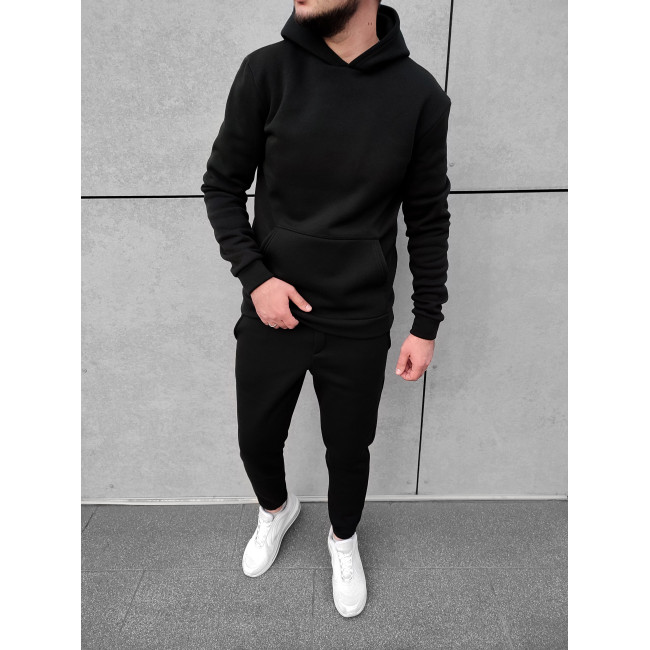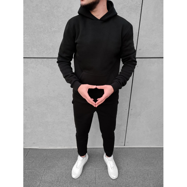 Мужской теплый базовый спортивный костюм с карманом "кенгуру" | Черный
