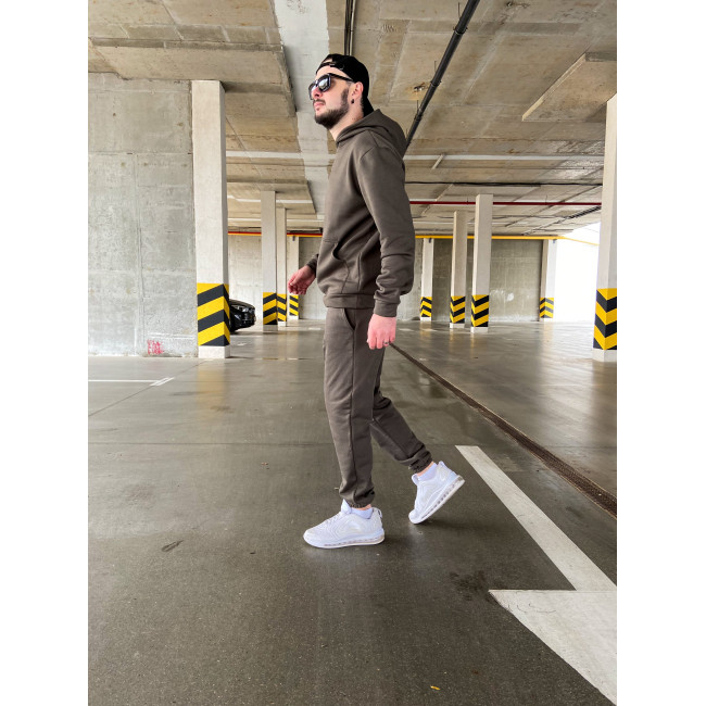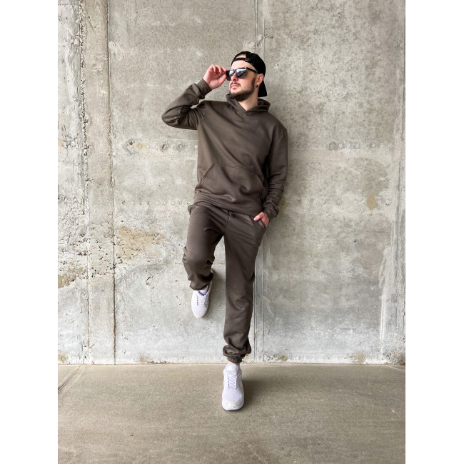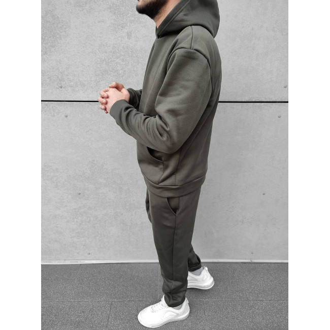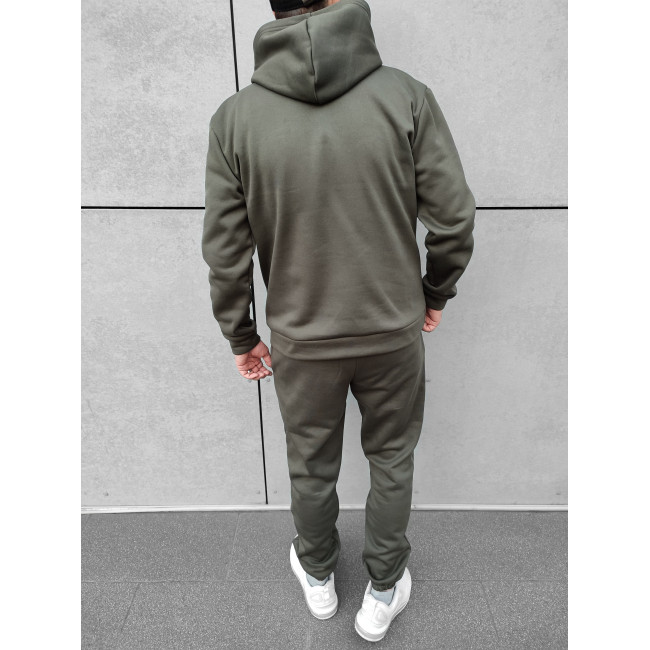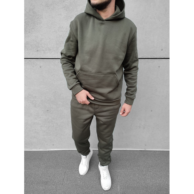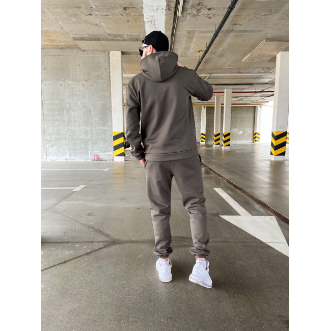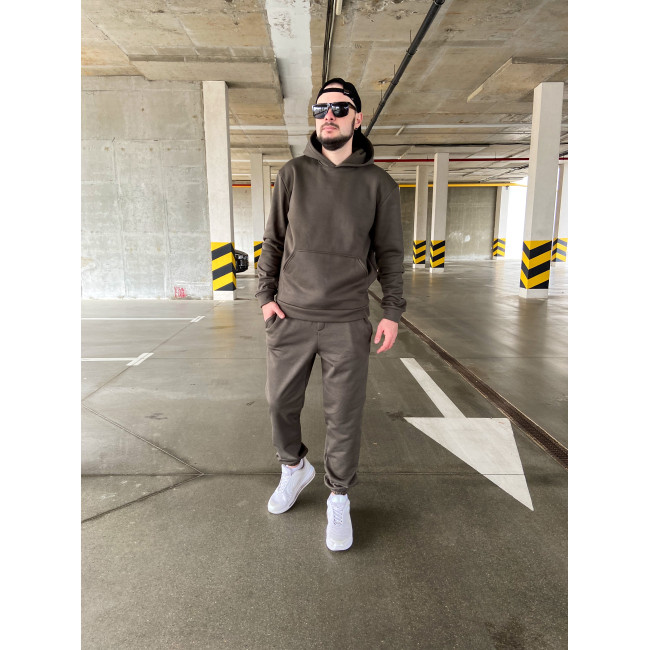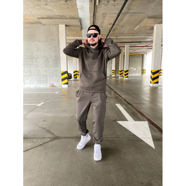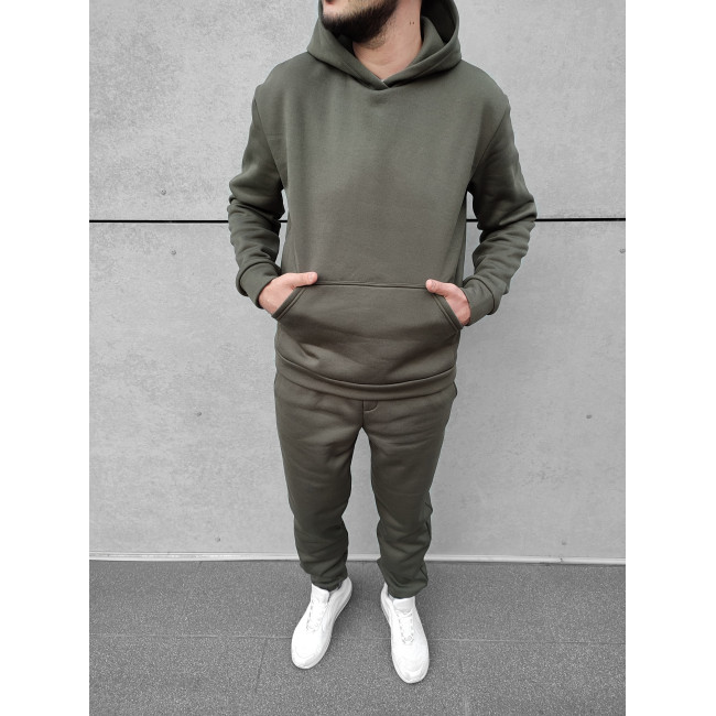 Мужской теплый базовый спортивный костюм с карманом "кенгуру" | Хаки
