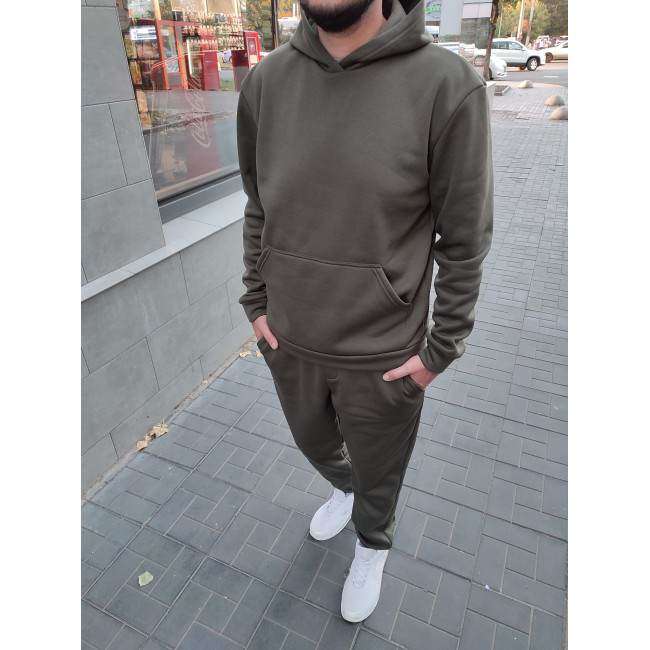 Описание Мужской теплый базовый спортивный костюм с карманом "кенгуру" | Хаки