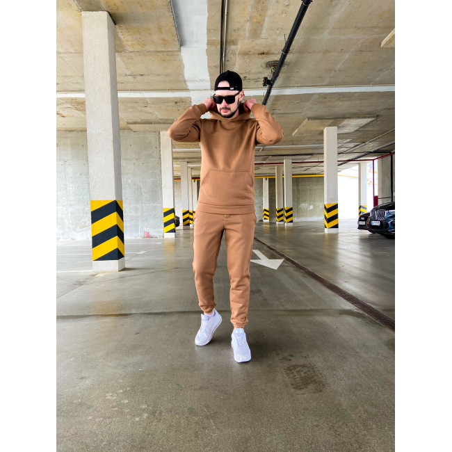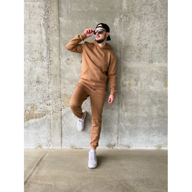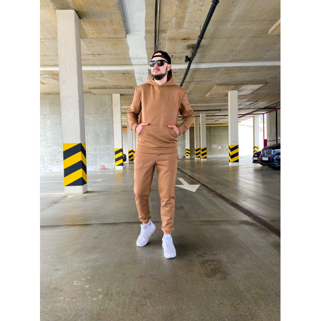 Мужской теплый базовый спортивный костюм с карманом "кенгуру" | Шоколад