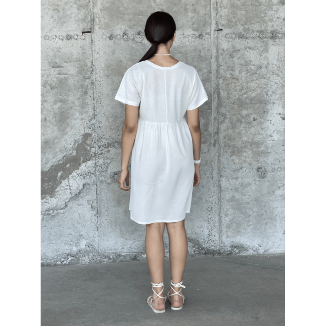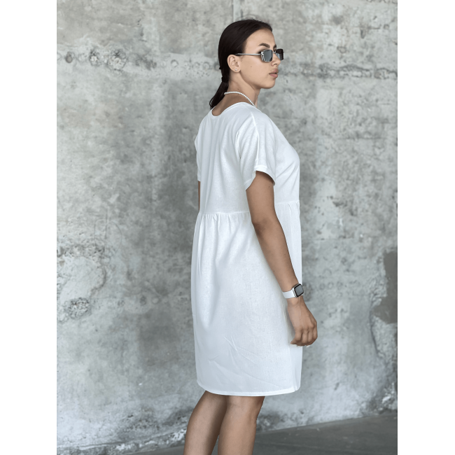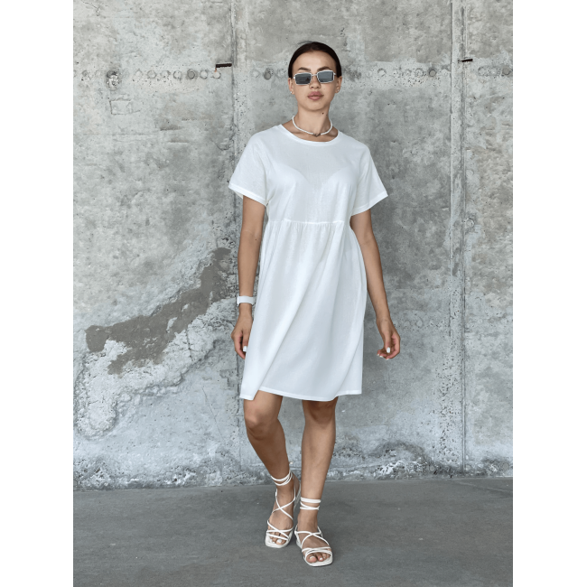 Описание Повседневное платье свободного кроя со спущенным рукавом молочный