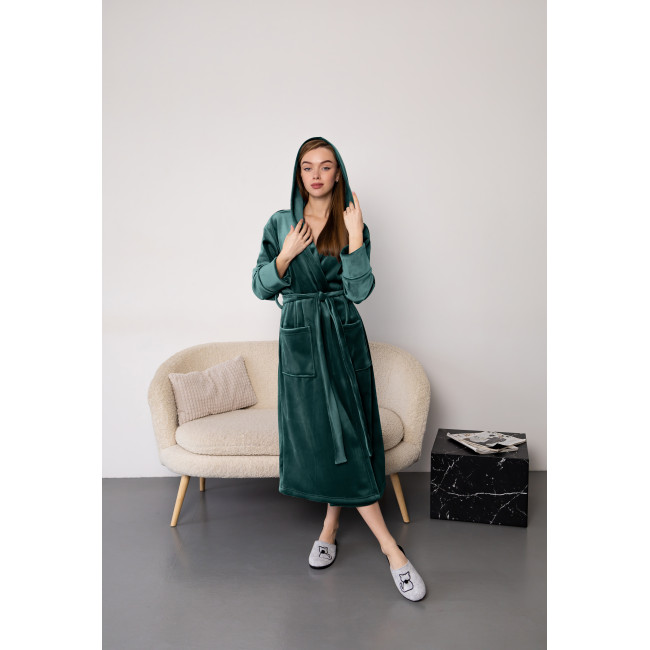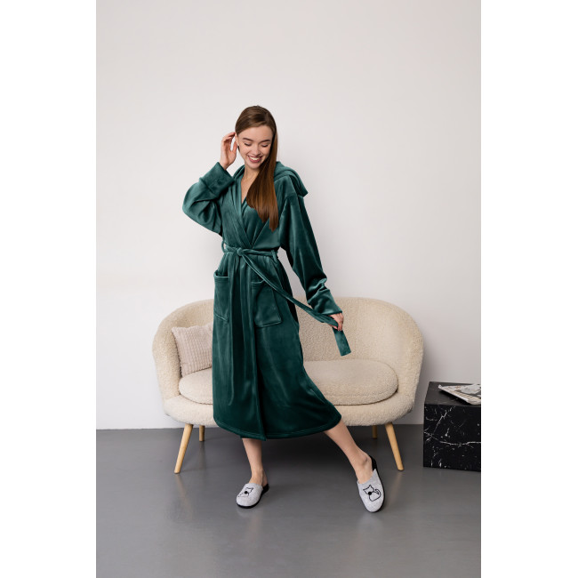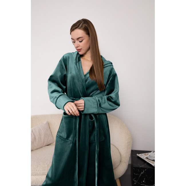 Описание Женский халат премиум качества цвет изумруд