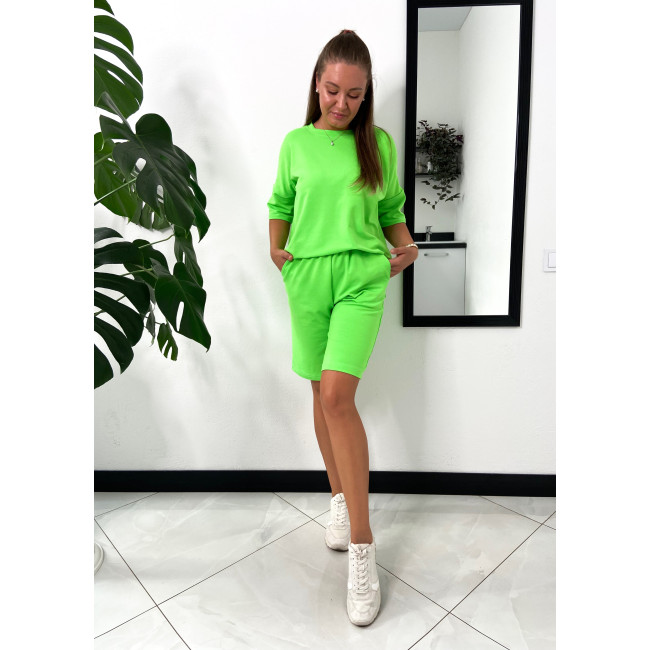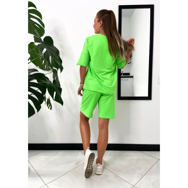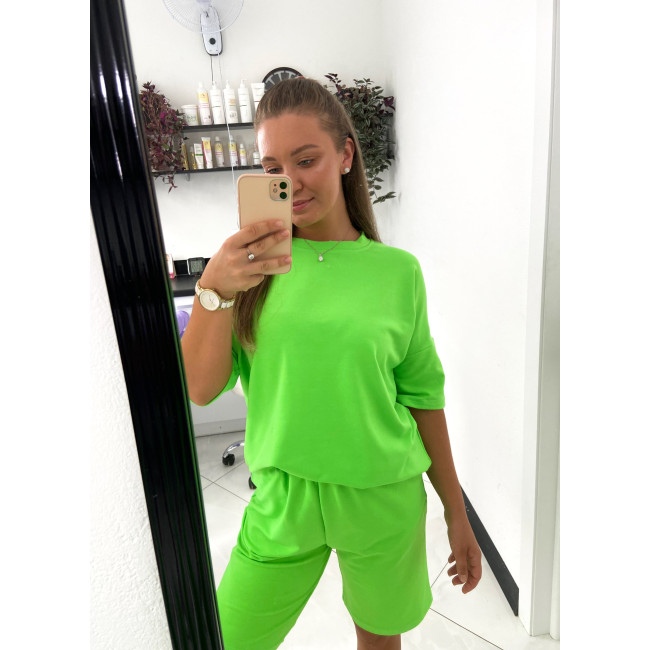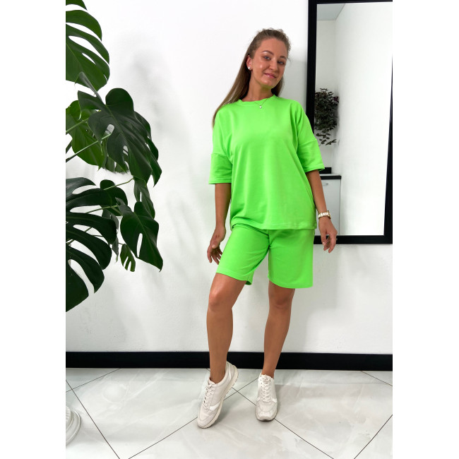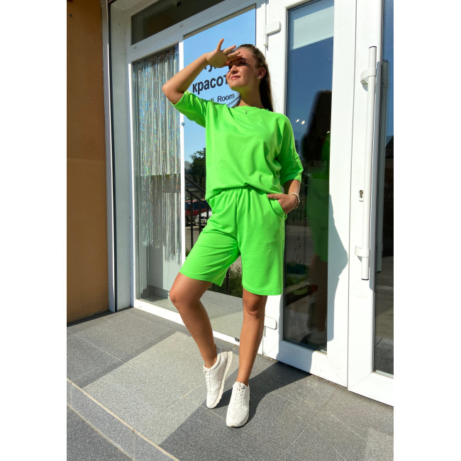 Салатовый оверсайз костюм: футболка и шорты