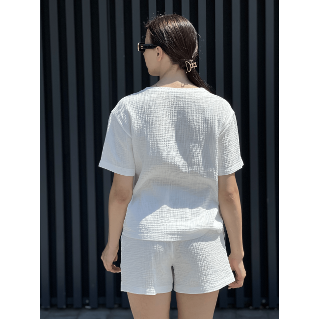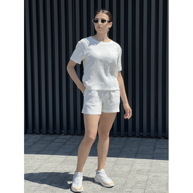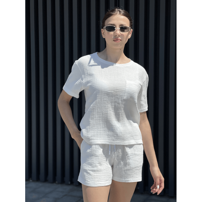 Женский летний костюм из муслина футболка с карманом молочный