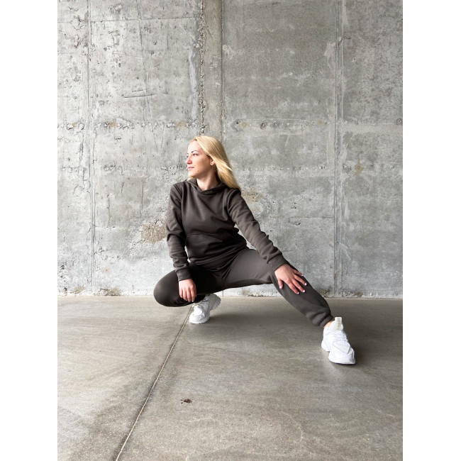 Женский теплый базовый спортивный костюм с карманом "кенгуру" | Хаки