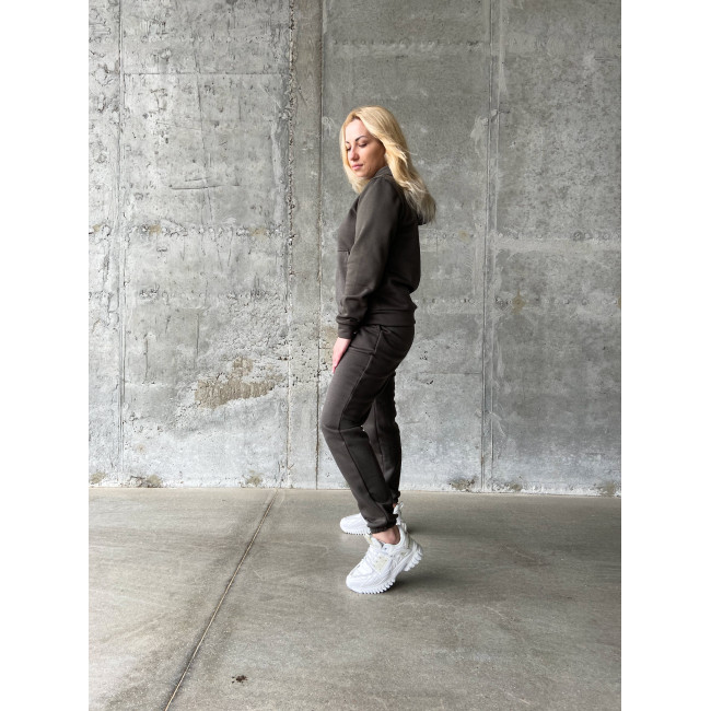 Описание Женский теплый базовый спортивный костюм с карманом "кенгуру" | Хаки