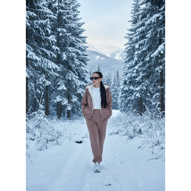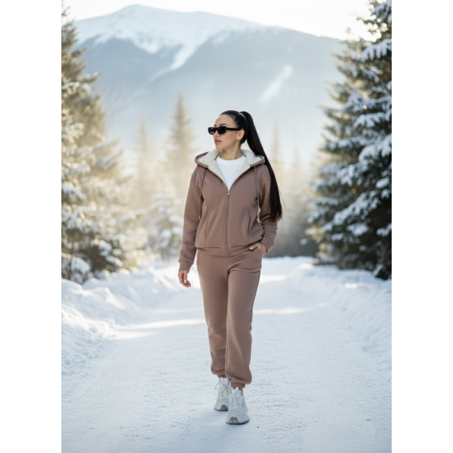 Описание Теплый женский костюм с мехом на кофте мокко