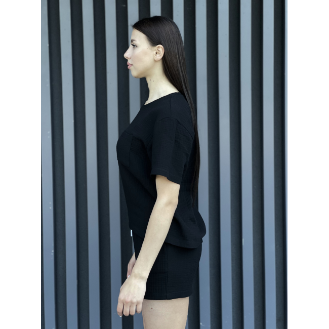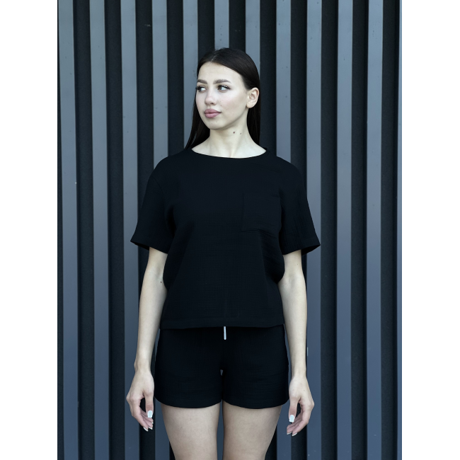 Жіночий літній костюм з мусліну футболка з кишенею чорний