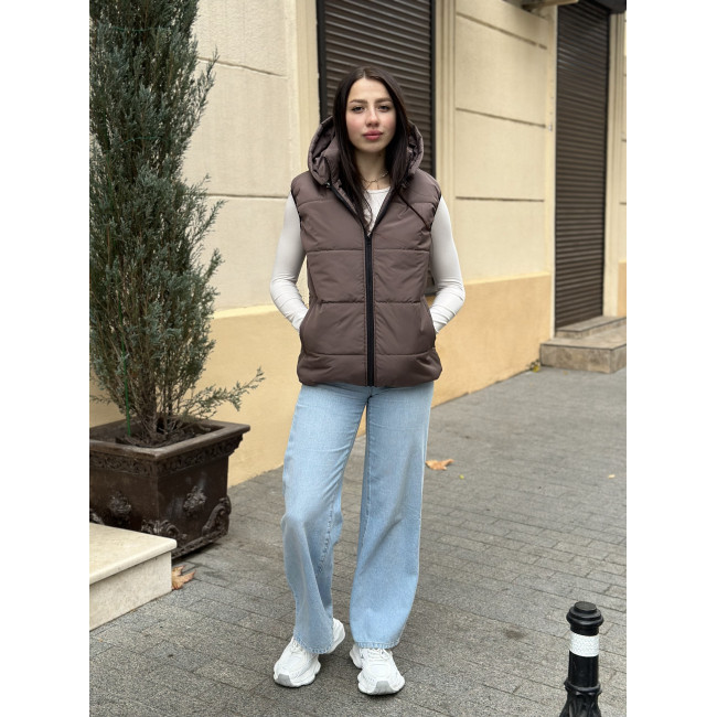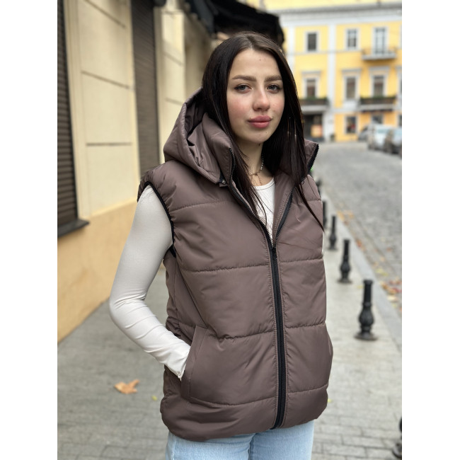 Жилетка жіноча зі з‘ємним капюшоном шоколад