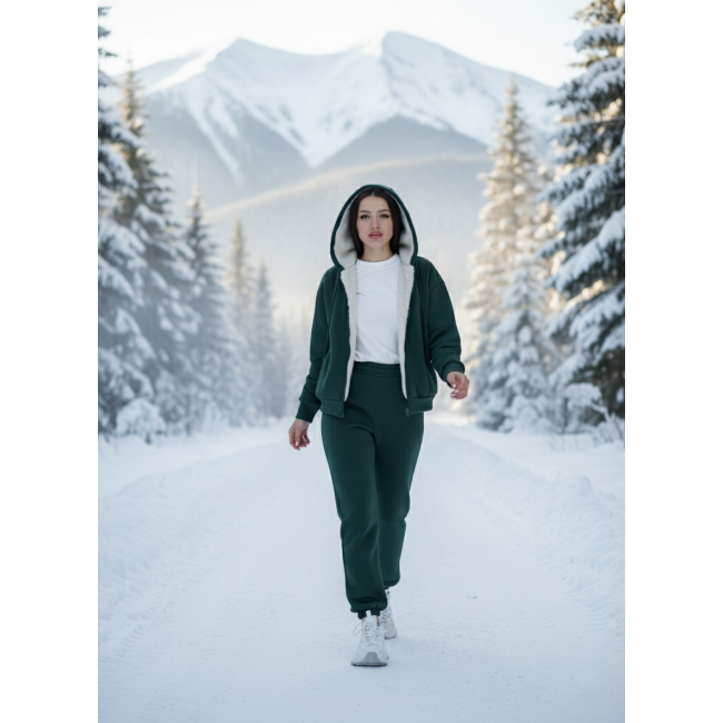 Характеристики Жіночий теплий костюм з хутром на кофті зелений